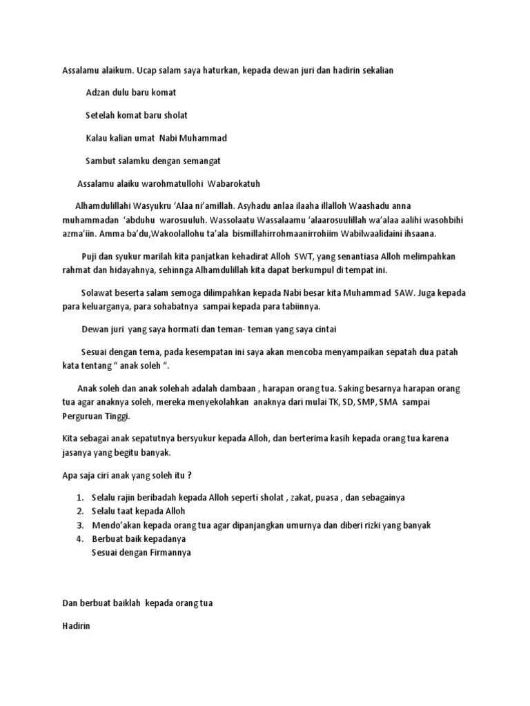 Ceramah Pidato Singkat Tentang Menjadi Anak Sholeh : Beberapa Contoh Pidato Tentang Kids Zaman Now Terbaru / Ustadz adi hidayat memberikan analogi sebuah tumbler atau botol air …